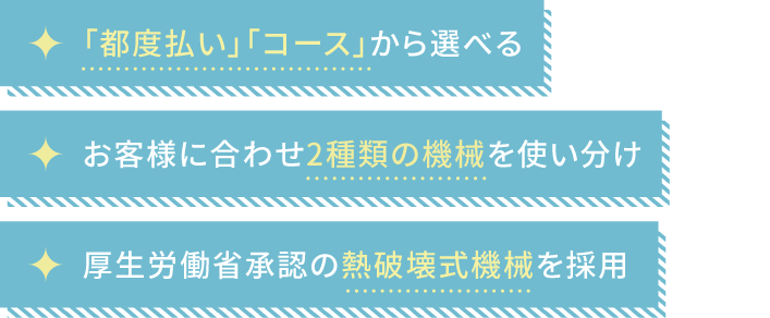 痛みを最小限に抑えるようにコントロールしながら施術します。